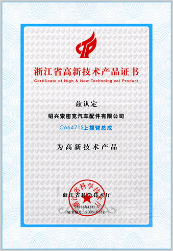 公司已先后通過IATF16949質(zhì)量管理體系認證、ISO/14001環(huán)境管理體系認證和OHSAS18001職業(yè)健康安全管理體系認證。是“國家高新技術(shù)企業(yè)”“行業(yè)龍頭企業(yè)”和“全國百家優(yōu)秀汽車零部件供應商”。